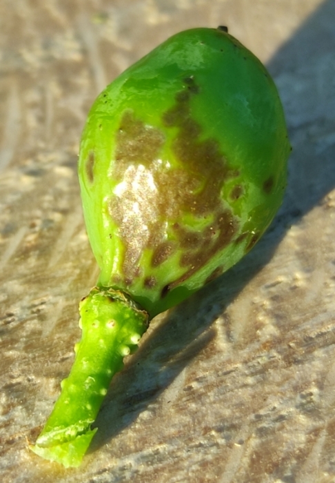 Áno, čierne plodničky sú rozlišovací prvok. Hnedý flek môže byť od čohokoľvek. Ale keď to už niekto má u seba a pozná to. Obava je na mieste, bo ČH sa šíri fakt rýchlo. Fleky na listoch, ber to čert. Ale keď začnú kapať bobuľky, to už je škoda.