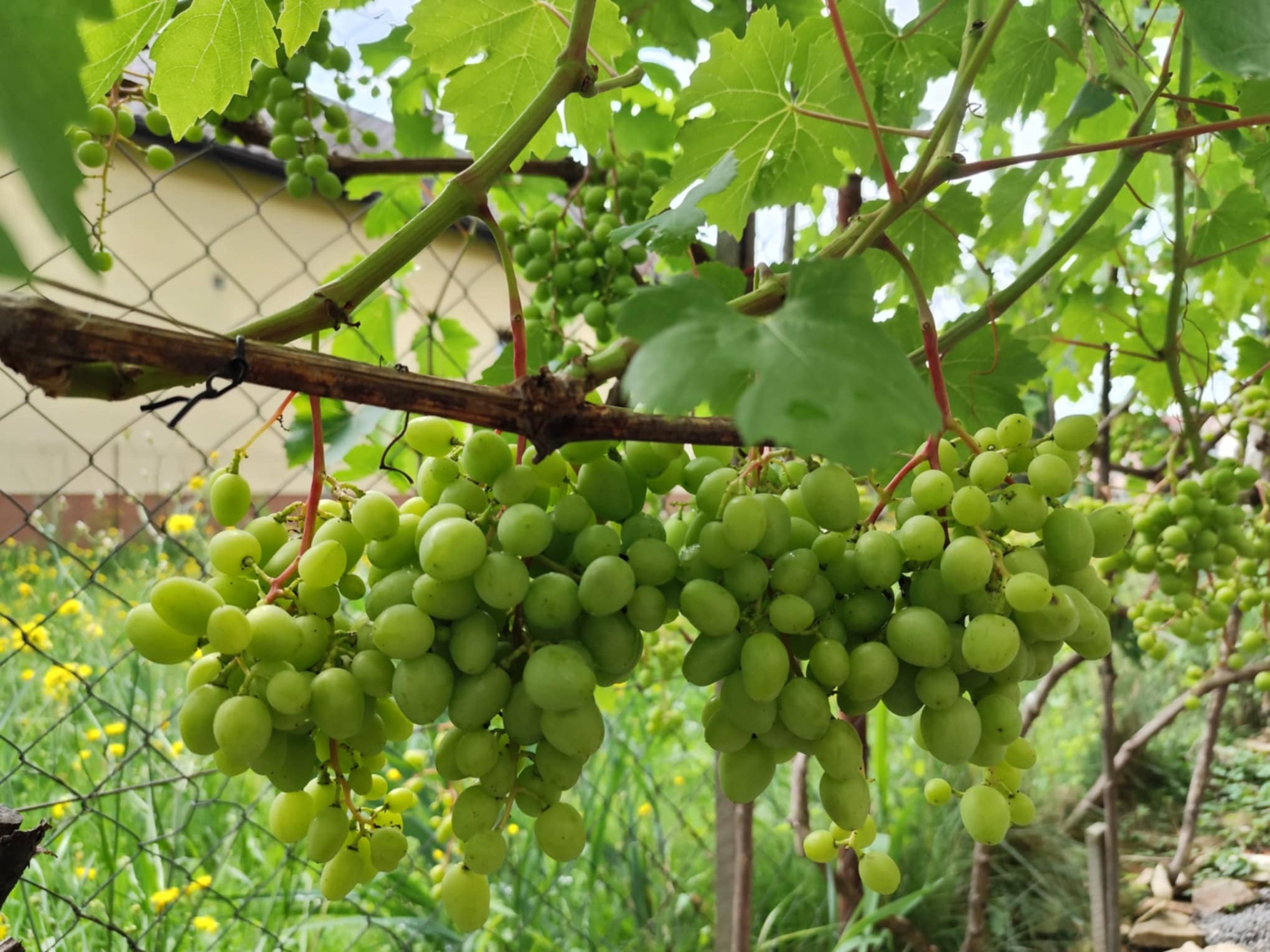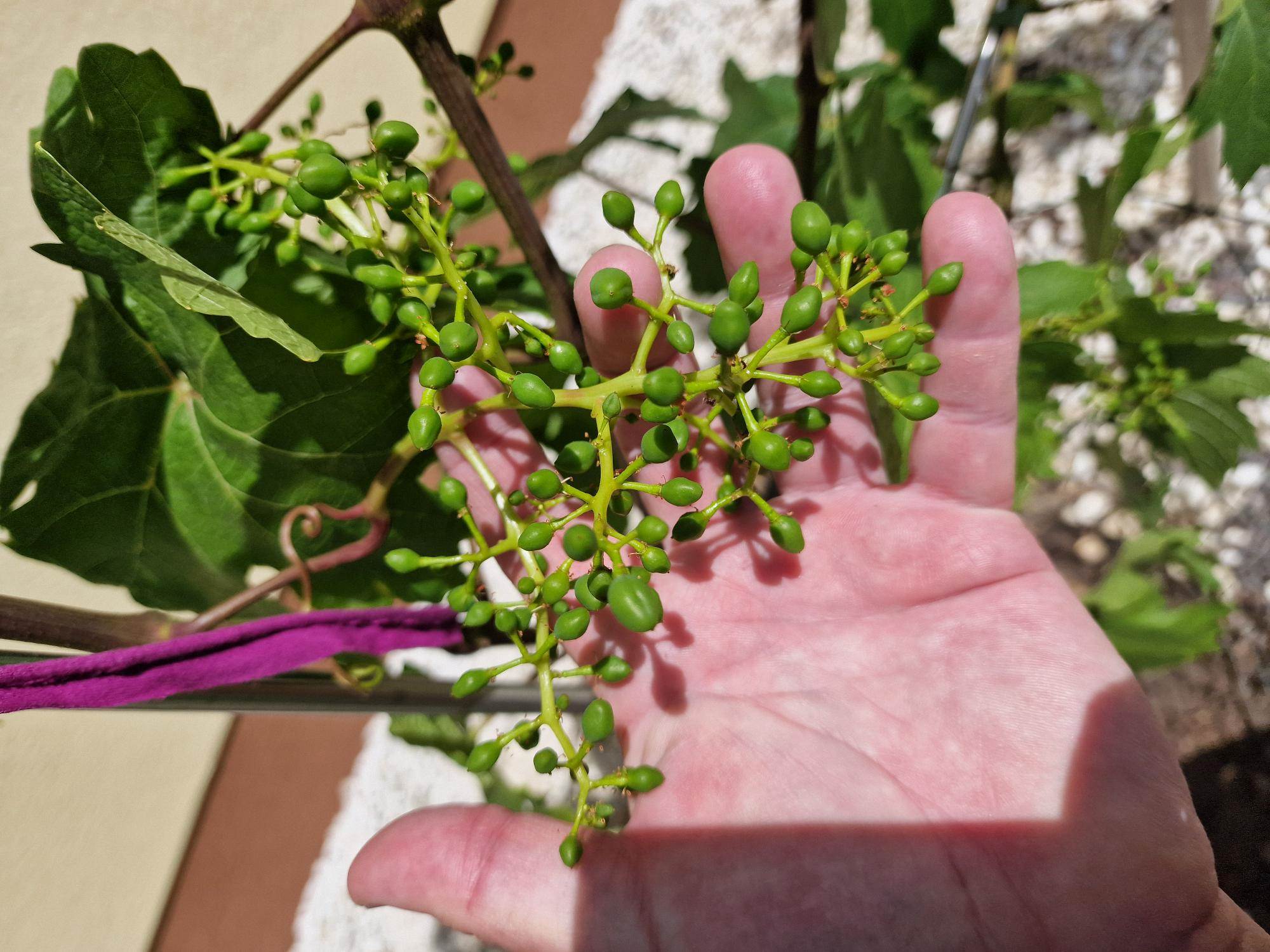 Odkvitla dokonale, dnes som zredukoval násadu z 3 strapcov na dva, čo pri 17 výhonoch znamená, že som nechal 34 strapcov z ktorých ak sa nič nestane bude tradičných cca 25 kg hrozna výbornej muškátovej chuti. Ak by bola bezsemenná a mala o niečo dlhšiu výdrž po dozretí, tak by bola úplne dokonalá.