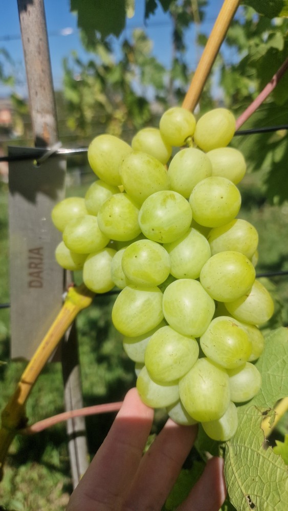 U mňa je Darja už sladká, ale zatiaľ tam necítim nijakú extra príchuť, ktorá sa tu spomína (citrónový muškát?). Chutí mi skoro ako harmonická odroda s ľahkým náznakom muškátu, ale sila muškátového orieška sa nedá porovnať napr. s Arnim a pod. Konzistenciu má výbornú.