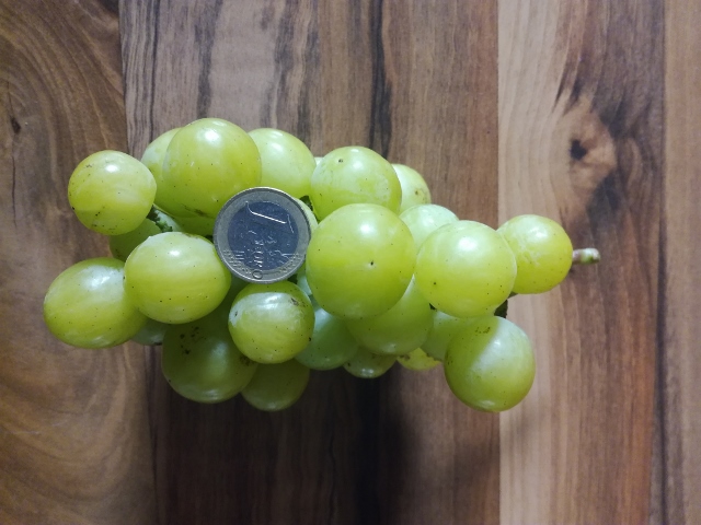 No, fakt to vyzerá dosť odlišne ako moja Prima Ukrajiny a to nehovorím o tom, že táto odroda má po plnom dozretí jeden z najvýraznejších a najchutnejších muškátov aké poznám. Strapce som nikdy nemusel riediť, naopak, keďže má ženský typ kvetu, tak sú niekedy strapce pomerne riedke a s “hráškom”. Bobule sú guľaté a tvrdé, chrupľavé.