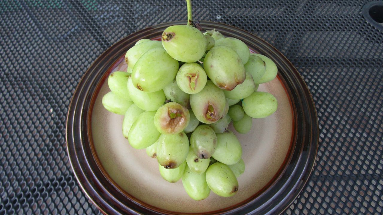 Dnešním největším zklamáním byla Darja. Nejzralejší střapce nezvládly přísun dešťové vláhy a většina bobulí popraskala.