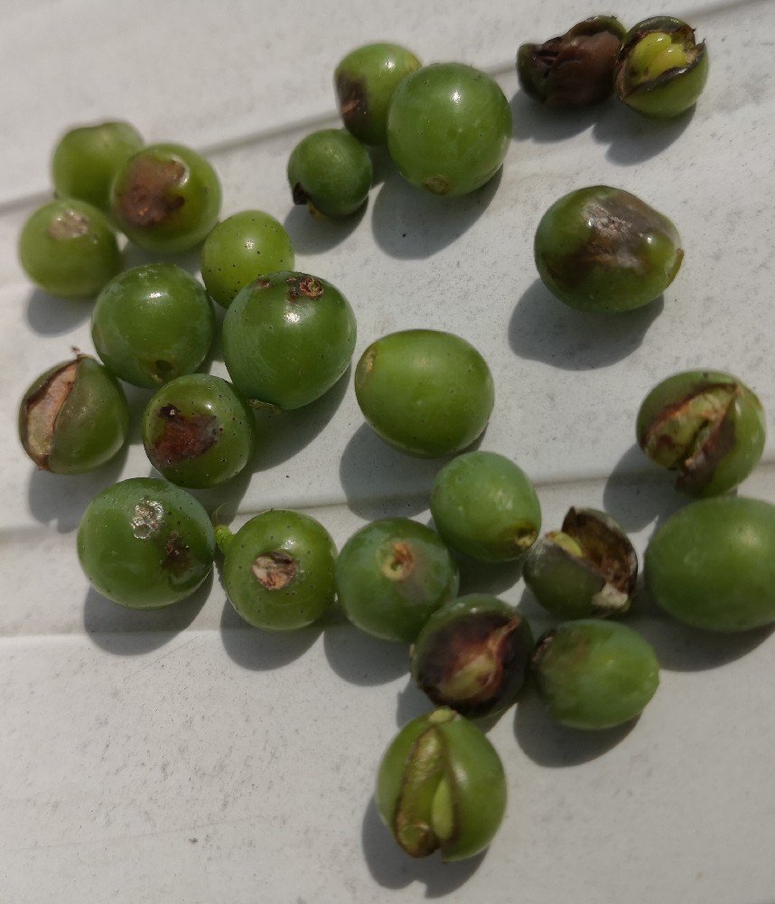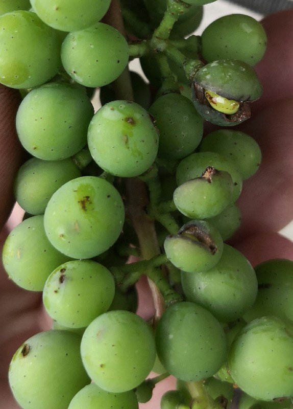 Poškozené bobule byly jak na konci strapce, tak jsem našel sem tam i nějakou uvnitř a nezdá se mi, že by to bylo jenom z jedné strany. Problém je, že brzo čekám dozrati, tj otázka je čím to stříknout. Dynali jsem doma měl, ale jak na potvoru ji nemůžu najít. Co navrhuješ použít?