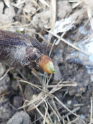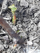 To že sa oteplilo je okamžite vidieť aj na rozvoji tohtoročných vrúbľov. Na tomto koreni je šesť vrúbľov zo štyroch odrôd, keďže rastlina nemá na výber, úspešnosť by mala byť 6/6. Najviac rozvinutá Stela už ukazuje aj pekné súkvetie, takže na jeseň by mohla byť z nej aj pár bobuľová signálka. Ostatné odrody tiež ukážu maximálne do týždňa, či aj z nich bude niečo na ochutnanie ešte tento rok.
